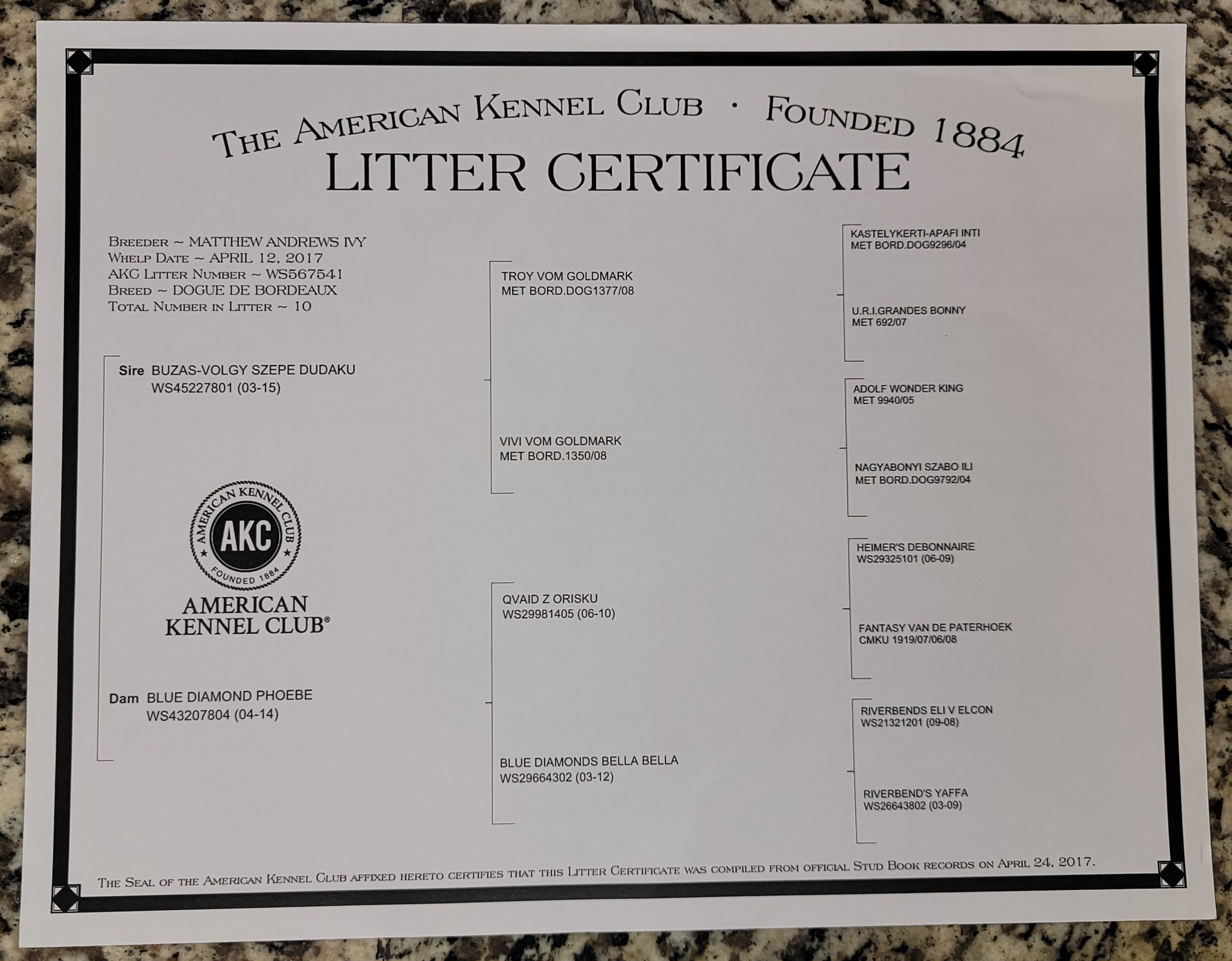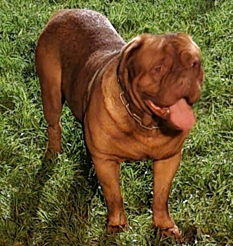 Drako is the son of Ivy Bordeaux's Hungarian import AKC Champion Laszlo born to Phoebe in 2017. The family that took him in could no longer keep him due to unexpected hardships due to the virus, so he came back home with us in 2020. His outstanding characteristics are his size and confirmation, incredible strength and athleticism, blocky head, and the 2nd-to-none loving temperament known of our dogues. If their was am NFL for dogues, he'd be an all-pro, hall-of-fame middle linebacker!