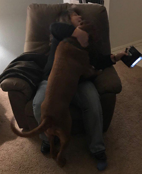 Ruby at 7 months old giving a little more love than my sister was expecting.