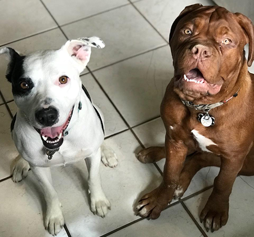 Ruby at 5 months, 71 lbs and her buddy Pepper.