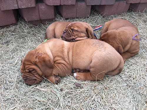 Check below for future puppy availability, this is updated regularly. We like to take only 6 puppy deposits/reservations (3 per each sex) before litter whelped. I also periodically breed my males with outside females and will post these puppies on the Ivy Bordeaux Facebook page.